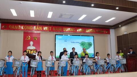 NGÂN HÀNG ACB CHI NHÁNH QUẢNG NGÃI TRAO TẶNG XE ĐẠP VÀ QUÀ CHO HỌC SINH NGHÈO VƯỢT KHÓ Ở XÃ TƯ NGHĨA