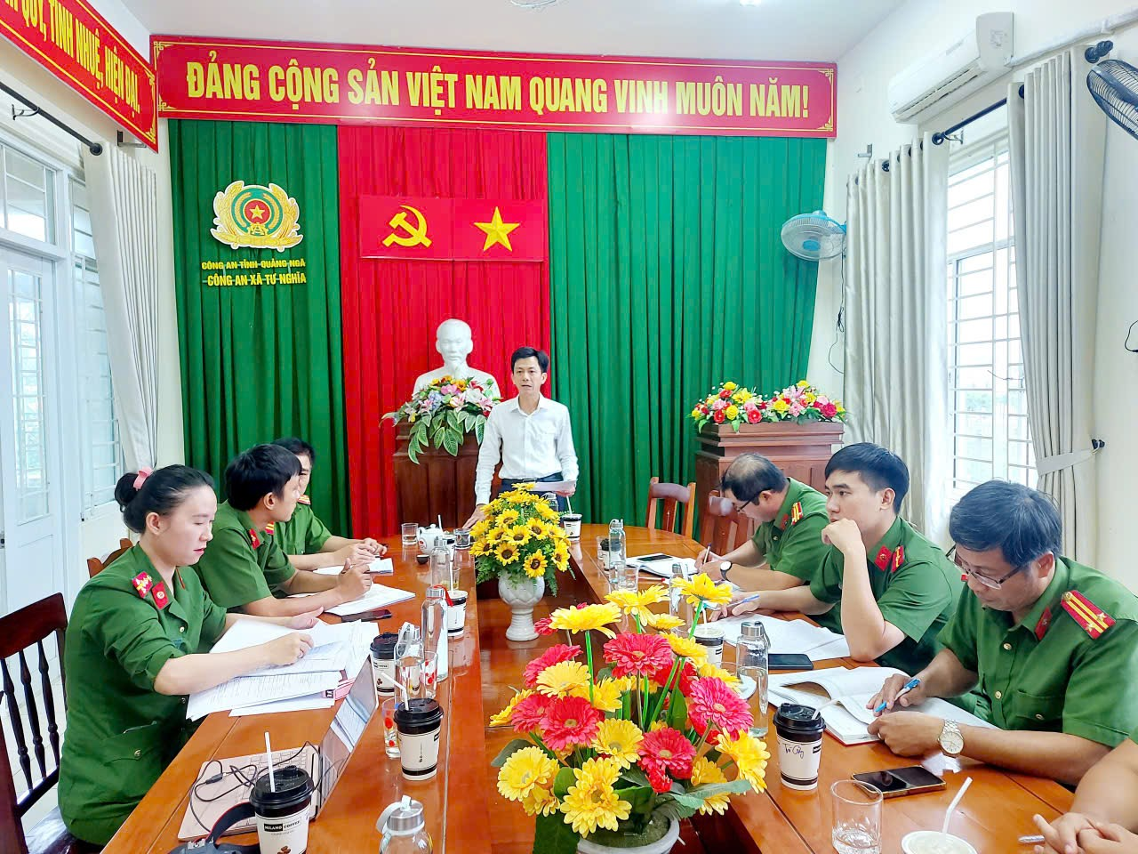 Tham dự buổi làm việc, có đồng chí Thượng tá Trần Định - Uỷ viên Ban Thường vụ Đảng uỷ xã, Trưởng Công an xã; cùng các đồng chí lãnh đạo Công an xã và toàn thể cán bộ, chiến sĩ Công an xã Tư Nghĩa.