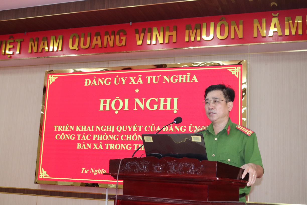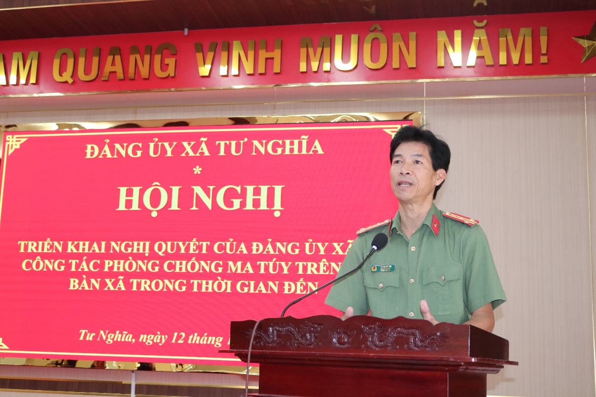 Tại hội nghị, đồng chí Thượng tá Trần Định - Ủy viên Ban Thường vụ Đảng ủy, Trưởng Công an xã Tư Nghĩa đã triển khai các văn bản về công tác phòng, chống ma túy trên địa bàn xã Tư Nghĩa trong thời gian đến.