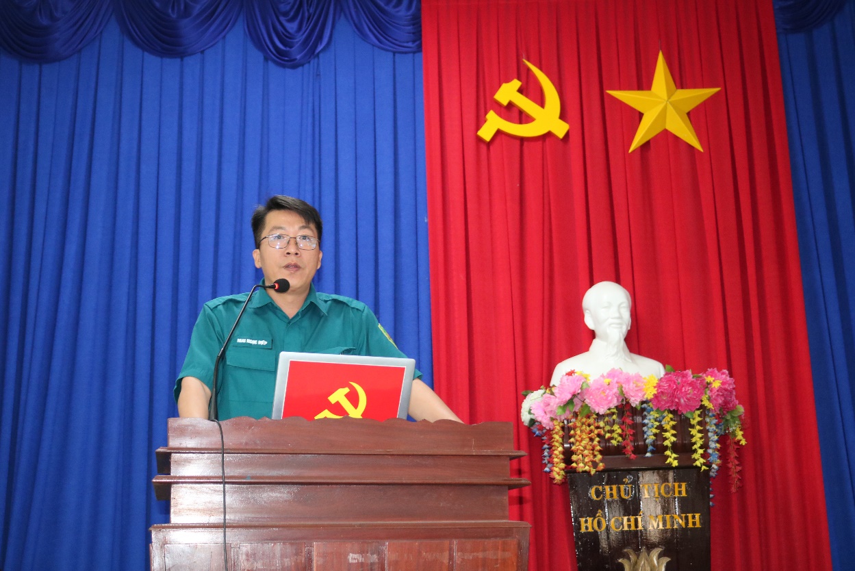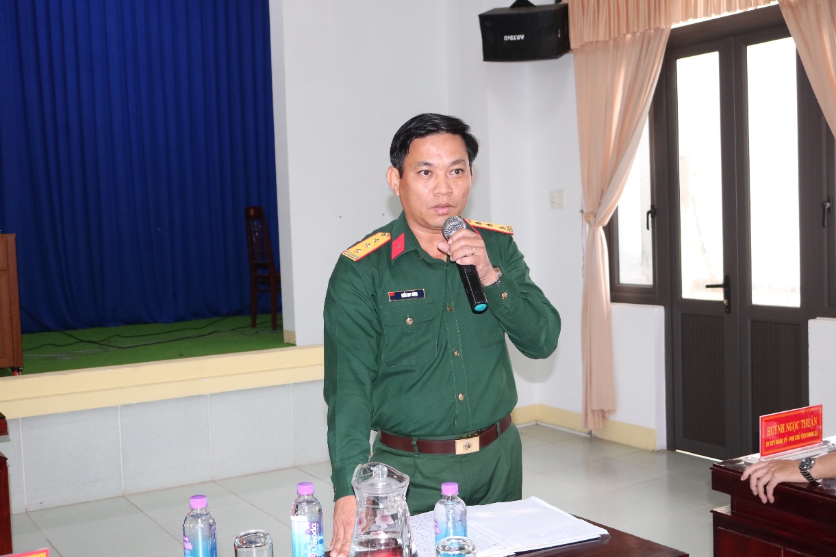 Đồng chí Thượng tá Kiều Duy Bình - Phó chỉ huy trưởng Ban chỉ huy phòng thủ khu vực V Đức Phổ phát biểu chỉ đạo tại hội nghị