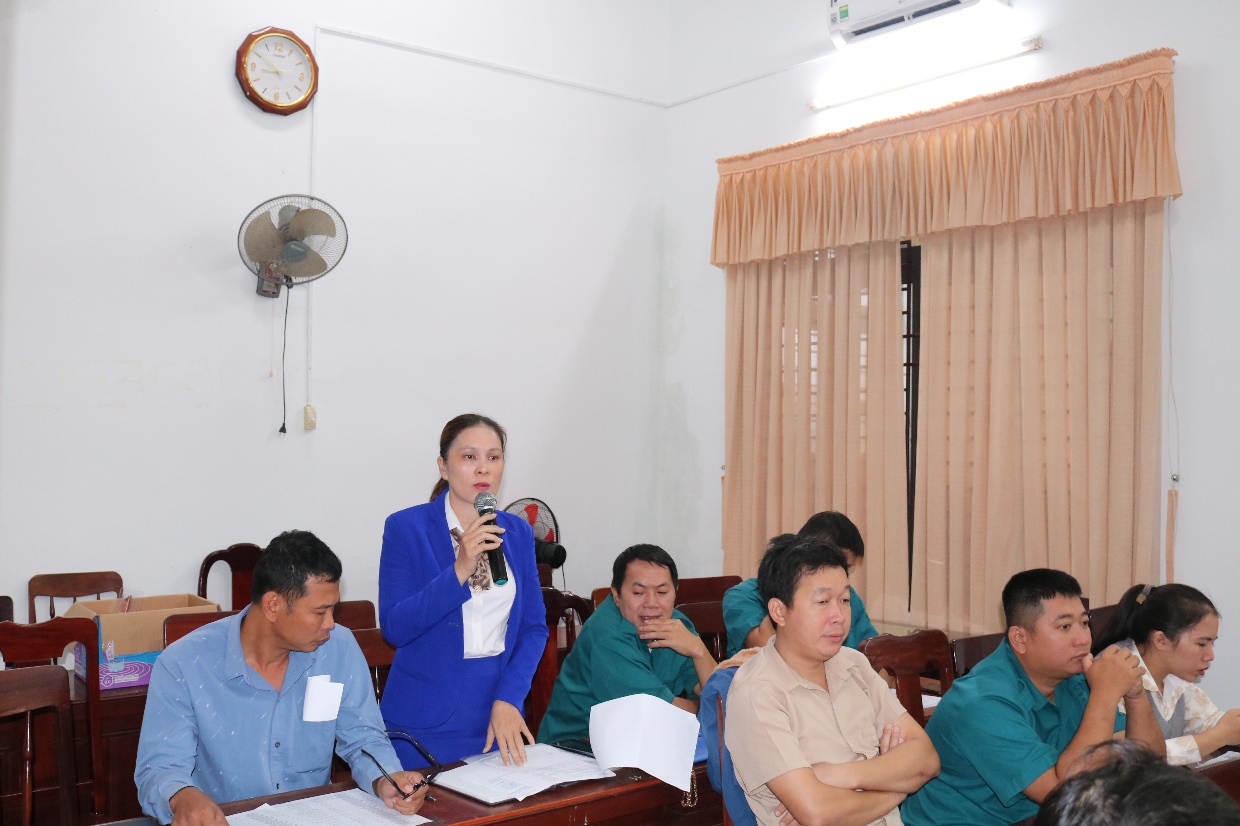 Đồng chí Lê Thị Ánh Nguyệt- Trưởng thôn Thanh Hà phát biểu thảo luận tại hội nghị