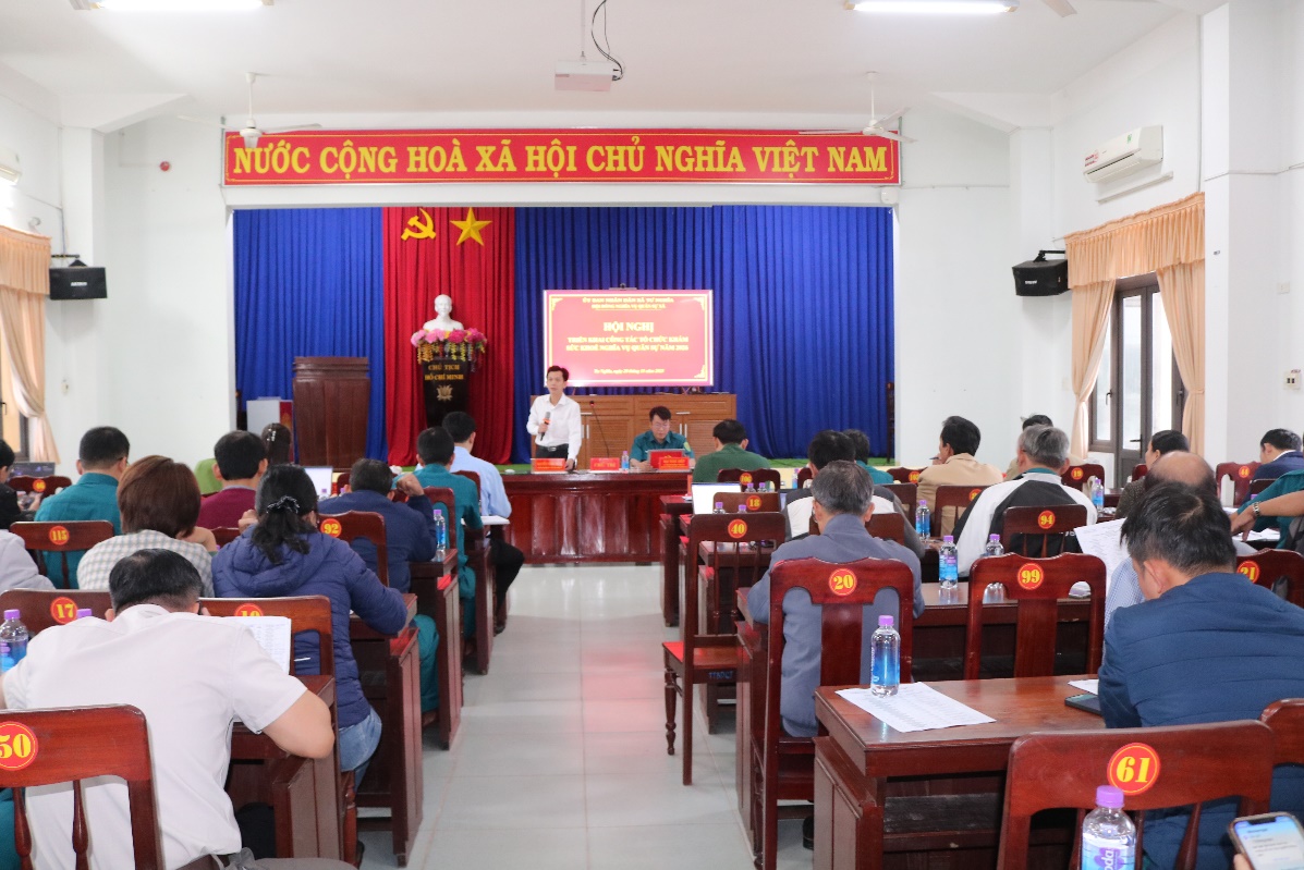 Phát biểu chỉ đạo tại hội nghị, đồng chí Thượng tá Kiều Duy Bình - Phó chỉ huy trưởng Ban chỉ huy phòng thủ khu vực V Đức Phổ và đồng chí Nguyễn Đăng Vinh - Bí thư Đảng ủy, Chủ tịch HĐND xã yêu cầu các cơ quan, đơn vị, thôn, các thành viên Hội đồng Nghĩa vụ Quân sự theo chức năng, nhiệm vụ được phân công, tập trung phối hợp triển khai kế hoạch, đảm bảo cơ sở vật chất, công tác hậu cần, kinh phí cho công tác khám sức khỏe cho thanh niên; đồng thời, tăng cường công tác tuyên truyền, vận động, nắm chắc tư tưởng thanh niên. Các đồng chí nhấn mạnh: Công tác giao quân là nhiệm vụ chính trị quan trọng của địa phương; do đó, từng thành viên Hội đồng nghĩa vụ cần phát huy tinh thần trách nhiệm, chung tay cùng với các thôn, nhằm đảm bảo công tác khám tuyển diễn ra đúng quy định, an toàn, công khai, dân chủ, khách quan, công bằng, đảm bảo 100% chỉ tiêu tỉnh giao.