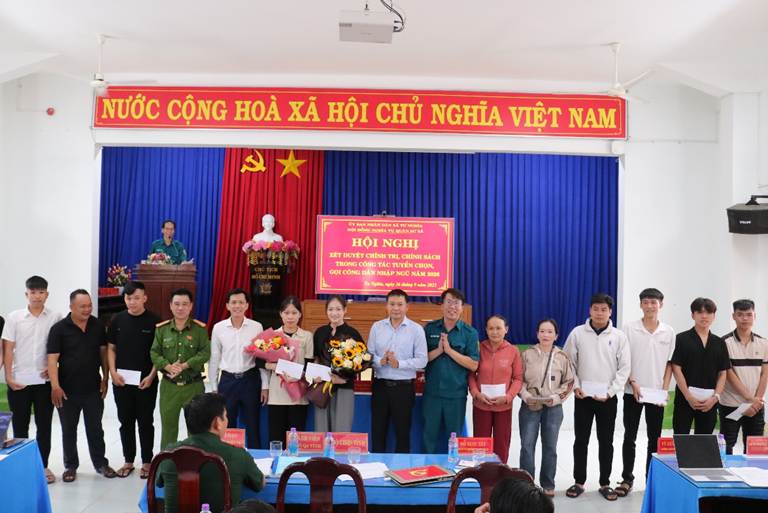 Trước khi đi vào hội nghị, Hội đồng Nghĩa vụ quân sự xã Tư Nghĩa đã gặp mặt, biểu dương và tặng quà cho 17 thanh niên viết đơn tình nguyện tham gia Nghĩa vụ quân sự năm 2026; trong đó, có 15 nam và 02 nữ.