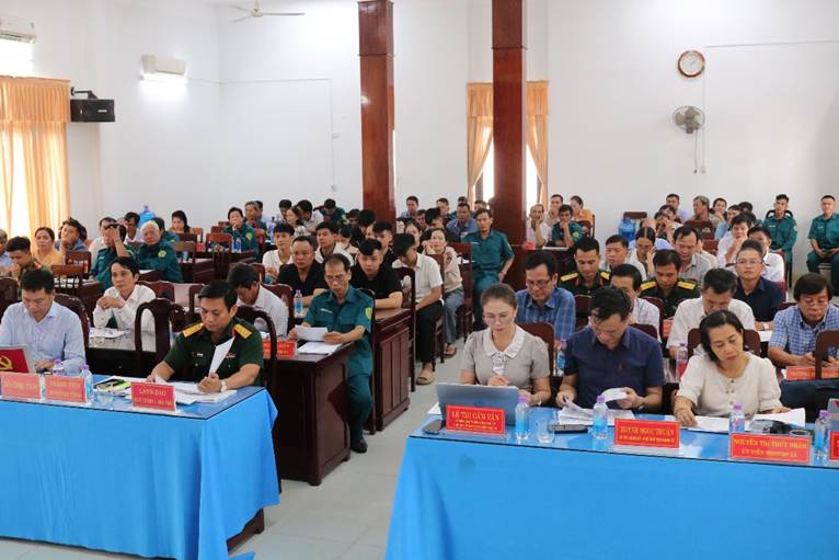 Dự hội nghị có các đồng chí: Kiều Duy Bình - Phó Chỉ huy Trưởng Ban Chỉ huy phòng thủ khu vực V Đức Phổ; Đỗ Ngọc Tây - Phó Bí thư Thường trực Đảng ủy xã; Huỳnh Ngọc Thuận - Ủy viên Ban Thường vụ Đảng ủy, Phó Chủ tịch HĐND xã; Lê Thị Cẩm Vân - Ủy viên Ban Thường vụ Đảng ủy, Chủ tịch UBMTTQVN xã; lãnh đạo các phòng, ban, ngành, hội, đoàn thể ở xã; thành viên Hội đồng Nghĩa vụ Quân sự xã; Bí thư Chi bộ, thôn, đội trưởng 25 thôn trên địa bàn xã.