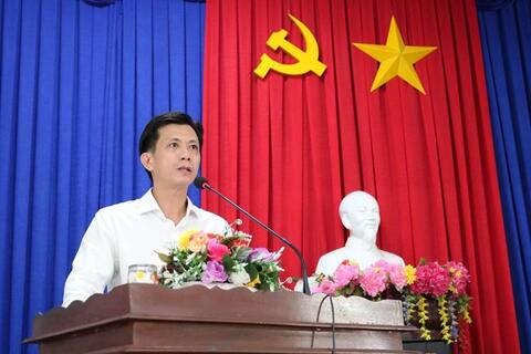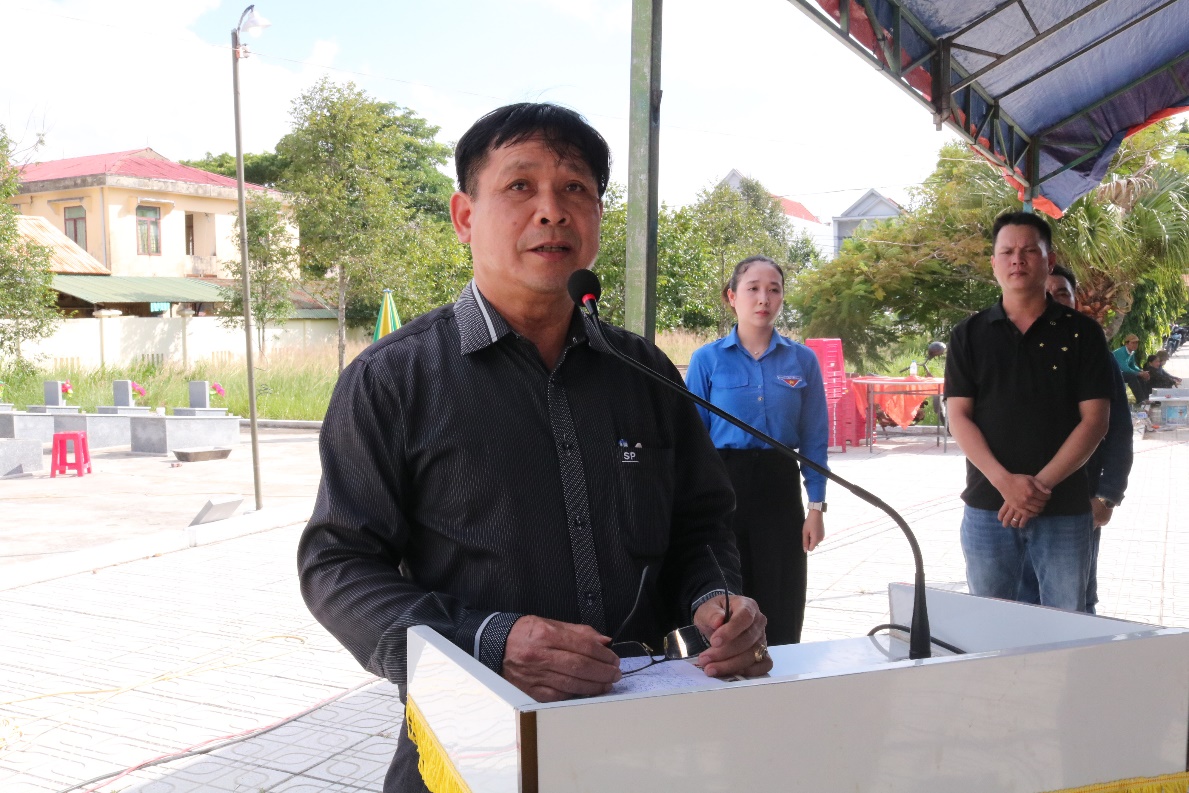 Đồng chí Nguyễn Anh Vũ - Trưởng phòng Văn hóa - Xã hội xã Tư Nghĩa đọc diễn văn tại Lễ truy điệu