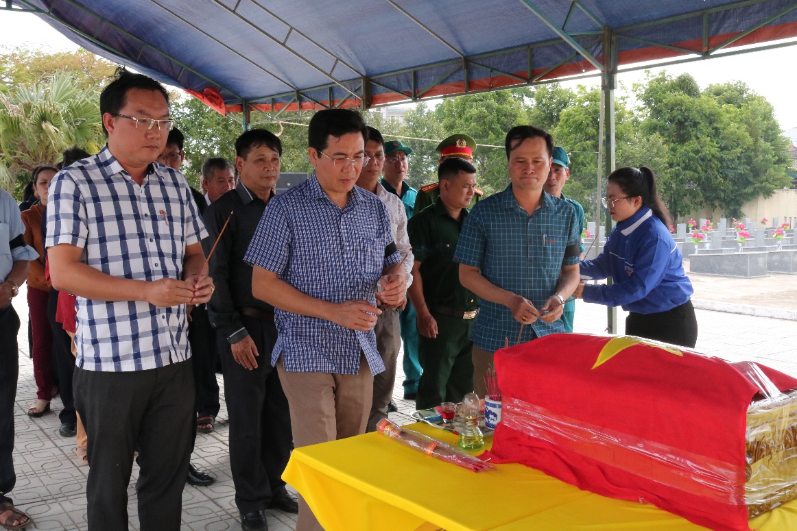 Các đồng chí Lãnh đạo xã thắp hương hài cốt Liệt sĩ Đào Chơi