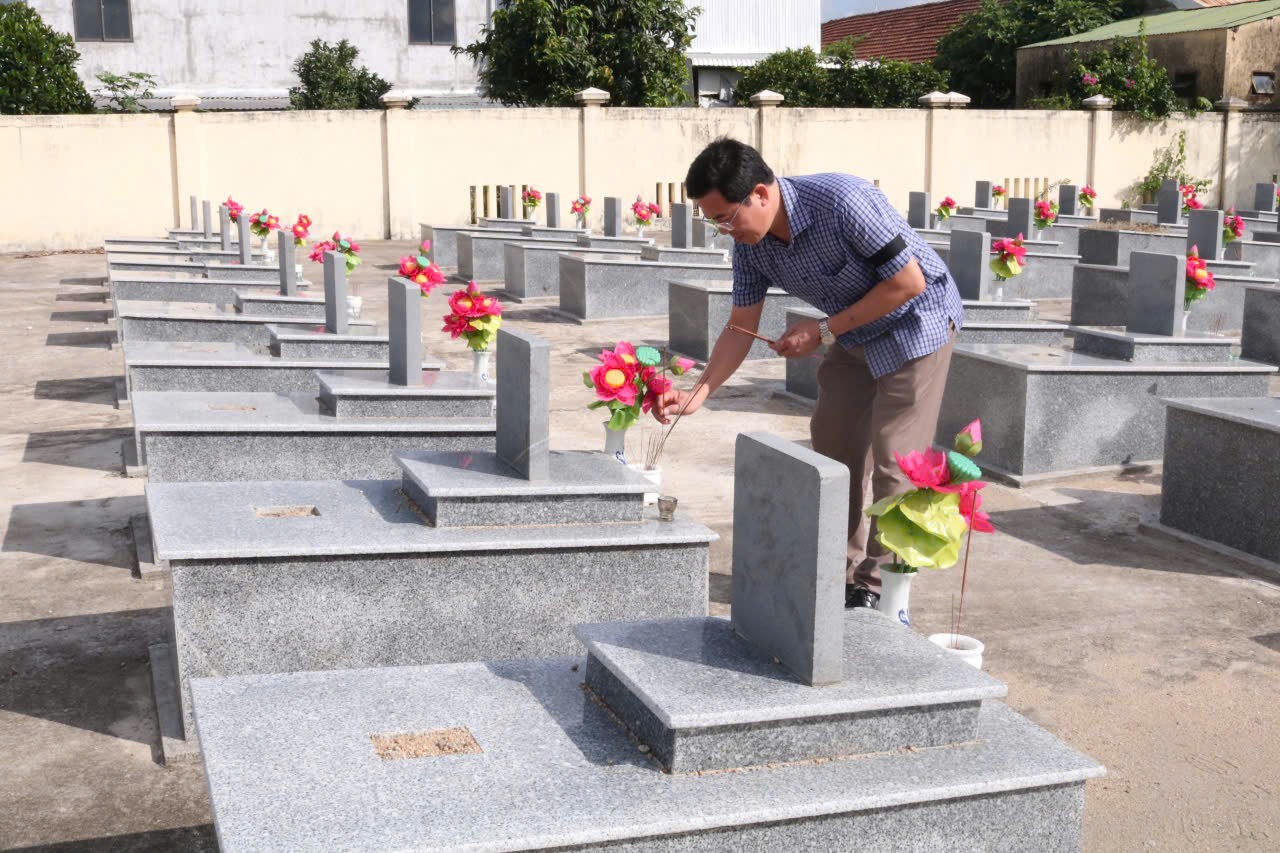 Các đồng chí Lãnh đạo xã thắp hương các phần mộ Liệt sĩ
