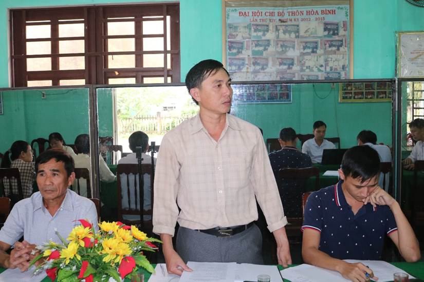 Đồng chí Trần Văn Hồng - Bí thư Chi bộ, Trưởng thôn Hòa Bình báo cáo tình hình hoạt động của Chi ủy, Chi bộ và các chi hội thôn từ đầu năm 2025 đến nay