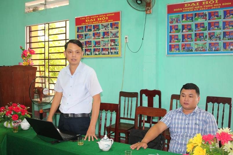 Tham dự buổi làm việc còn có các đồng chí: Tô Tấn Linh - Phó Chủ tịch UBMTTQVN xã, Chủ tịch Hội Nông dân xã; Đinh Thị Thu Hằng- Phó Chủ tịch UBMTTQVN xã, Chủ tịch Hội LHPN xã; Huỳnh Ngọc Thanh - Phó Chủ tịch UBMTTQVN xã, Chủ tịch Hội Cựu Chiến binh xã; cùng các đồng chí trong Chi ủy, Chi bộ, chi hội trưởng thôn Hòa Bình.