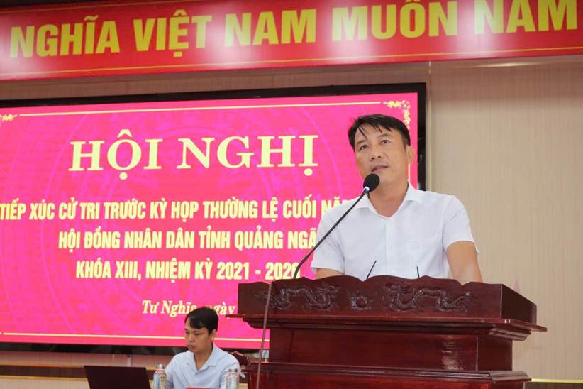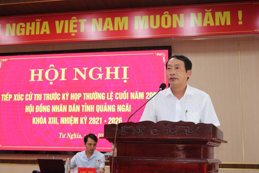 Cử tri xã Tư Nghĩa nêu một số ý kiến, kiến nghị liên quan đến chế độ, chính sách thờ cúng Liệt sĩ; cần lắp đặt hệ thống đèn tín hiệu ở ngã tư Ba La đường xuống xã Nghĩa Hòa (cũ) để hạn chế tình trạng tai nạn giao thông; việc cấp giấy chứng nhận quyền sử dụng đất, chuyển đổi mục đích sử dụng đất, việc tách thửa cho các hộ dân hiện nay rất khó khăn, gây bức xúc trong Nhân dân; các ngành, các cấp cần quan tâm giải quyết dự án sân vận động và chợ xã Nghĩa Trung (cũ) để người dân được hưởng lợi; cần mở rộng tuyến đường nối cầu Phủ để người dân đi lại được thuận tiện; các ngành, các cấp cần quan tâm đến các hội đặc thù để có nguồn kinh phí hoạt động.