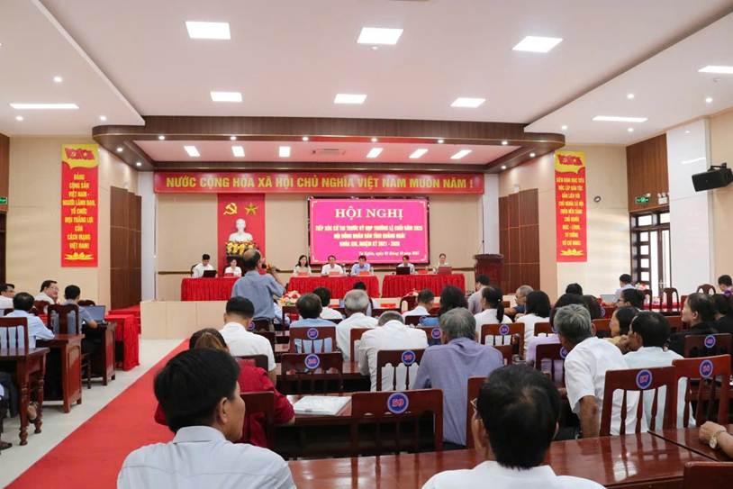 Các vị đại biểu HĐND tỉnh tại buổi tiếp xúc với bà con cử tri xã Tư Nghĩa