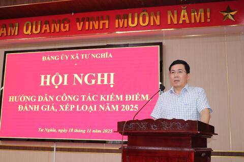 Sáng ngày 18/11/2025, Đảng ủy xã Tư Nghĩa tổ chức hội nghị triển khai, hướng dẫn công tác kiểm điểm, đánh giá, xếp loại chất lượng đối với tập thể và cá nhân trong hệ thống chính trị năm 2025.