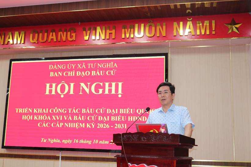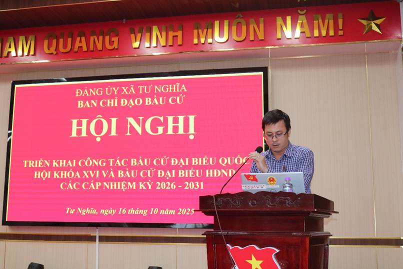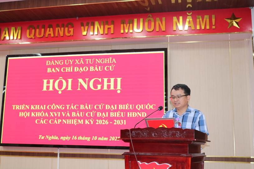 Chiều ngày 16/10/2025, đồng chí Nguyễn Đăng Vinh - Bí thư Đảng ủy, Chủ tịch HĐND xã, Trưởng Ban Chỉ đạo bầu cử xã Tư Nghĩa đã chủ trì cuộc họp Ban chỉ đạo bầu cử đại biểu Quốc hội khóa XVI và đại biểu HĐND các cấp, nhiệm kỳ 2026 - 2031 lần thứ I.