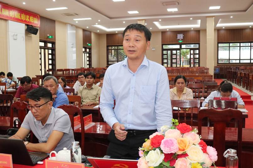 Đồng chí Đỗ Ngọc Tây - Phó Bí thư Thường trực Đảng ủy xã phát biểu thảo luận tại cuộc họp