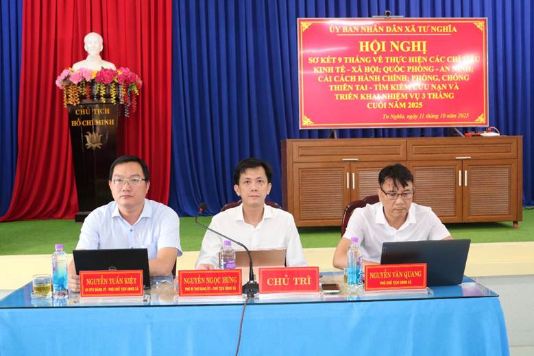 Sáng ngày 11/10/2025, UBND xã Tư Nghĩa tổ chức hội nghị sơ kết 09 tháng đầu năm về thực hiện các chỉ tiêu phát triển kinh tế - xã hội, quốc phòng - an ninh, cải cách hành chính, phòng chống thiên tai - tìm kiếm cứu nạn; triển khai nhiệm vụ còn lại của 03 tháng cuối năm 2025.