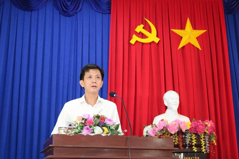 Đồng chí Nguyễn Ngọc Hưng - Phó Bí thư Đảng ủy, Chủ tịch UBND xã phát biểu chỉ đạo tại hội nghị