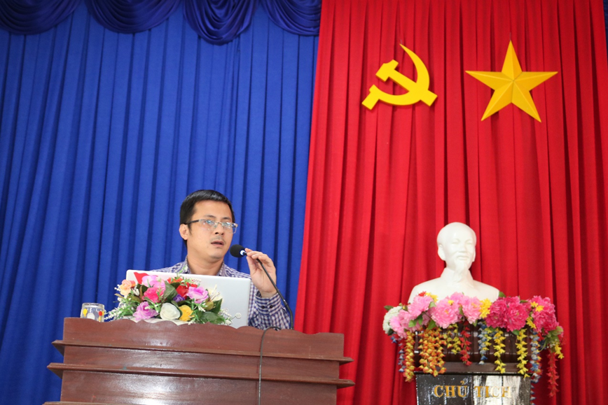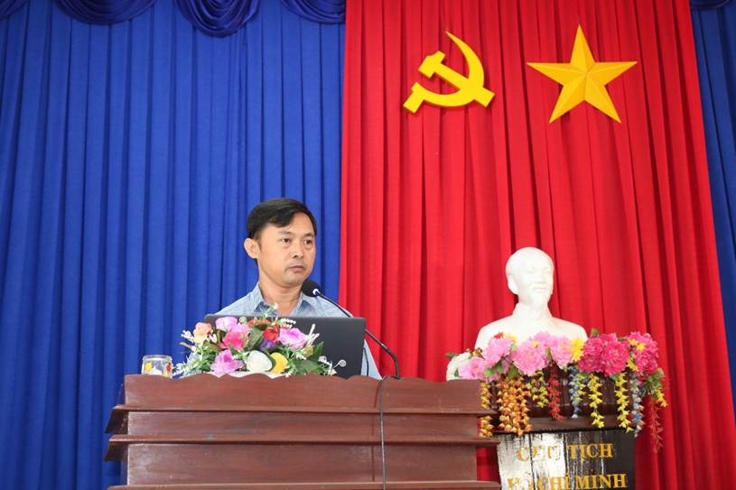 Đồng chí Nguyễn Anh Vũ - Trưởng phòng Văn hóa - Xã hội xã báo cáo tình hình cải cách hành chính 09 tháng đầu năm