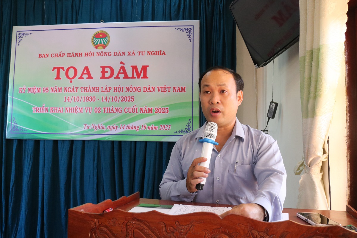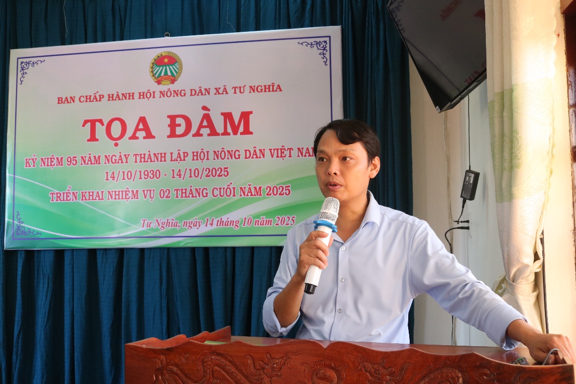 Phát biểu tại buổi gặp mặt, tọa đàm, đồng chí Tô Tấn Linh - Phó Chủ tịch Uỷ ban MTTQVN, Chủ tịch Hội Nông dân xã nhấn mạnh vai trò, tầm quan trọng của Hội nông dân trong phát triển kinh tế - xã hội của xã. Trong thời gian tới, đồng chí mong muốn các đồng chí Ủy viên Ban Chấp hành Hội Nông dân xã tiếp tục đẩy mạnh tuyên truyền, vận động hội viên thực hiện tốt chủ trương, chính sách của Đảng, pháp luật của Nhà nước; tích cực ứng dụng khoa học - công nghệ, chuyển đổi số trong sản xuất, góp phần phát triển kinh tế hộ gia đình và cộng đồng; xây dựng tổ chức Hội ngày càng vững mạnh, thực sự là chỗ dựa tin cậy của giai cấp Nông dân; phát huy vai trò nêu gương, tinh thần đoàn kết, sáng tạo, góp phần cùng Đảng bộ và Nhân dân xã Tư Nghĩa thực hiện thắng lợi Nghị quyết Đại hội Đảng bộ xã lần thứ I, nhiệm kỳ 2025 - 2030.