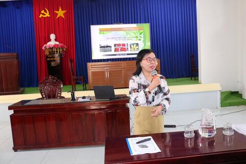 Bà Trần Ngọc Yến Trang- Trưởng phòng Bảo vệ thực vật của Chi cục Trồng trọt, Bảo vệ thực vật và Quản lý chất lượng hướng dẫn các nội dung chuyên môn về quy trình thiết lập và quản lý mã số vùng trồng, cơ sở đóng gói phục vụ xuất khẩu