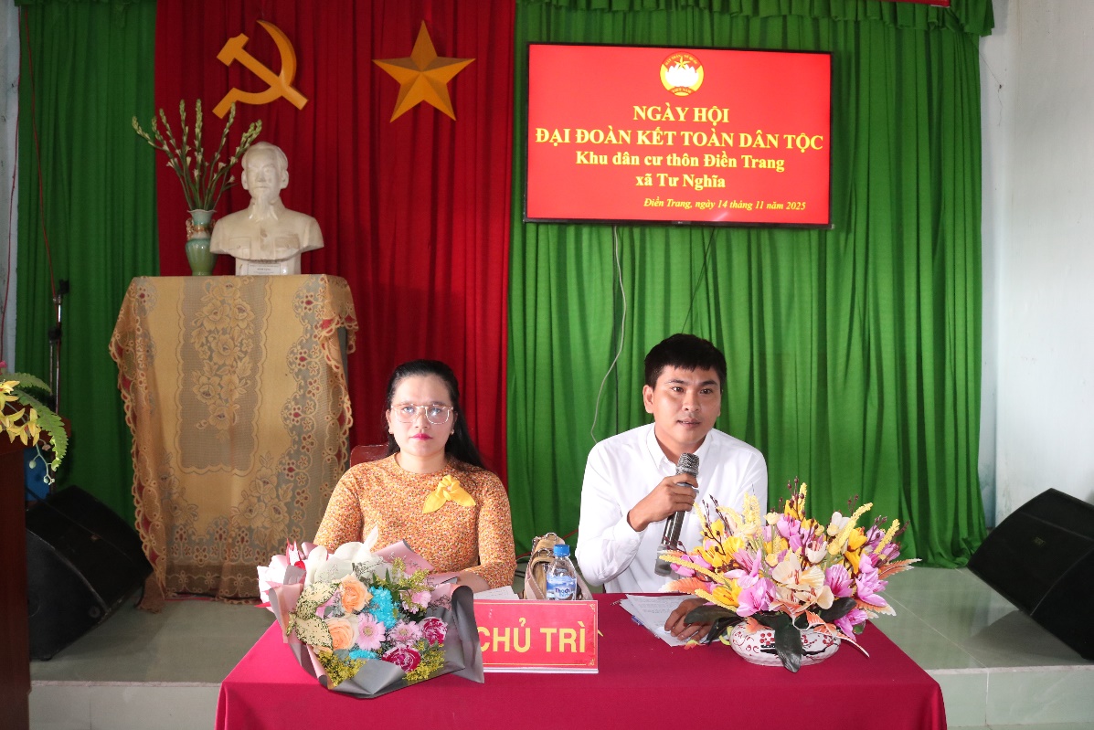 Nhân kỷ niệm 95 năm Ngày truyền thống Mặt trận Tổ quốc Việt Nam (18/11/1930 - 18/11/2025) và Ngày hội Đại đoàn kết toàn dân tộc, sáng ngày 14/11/2025, tại nhà văn hóa thôn Điền Trang, Ủy ban MTTQVN xã Tư Nghĩa phối hợp với Ban công tác Mặt trận thôn Điền Trang tổ chức Ngày hội Đại đoàn kết toàn dân tộc năm 2025.