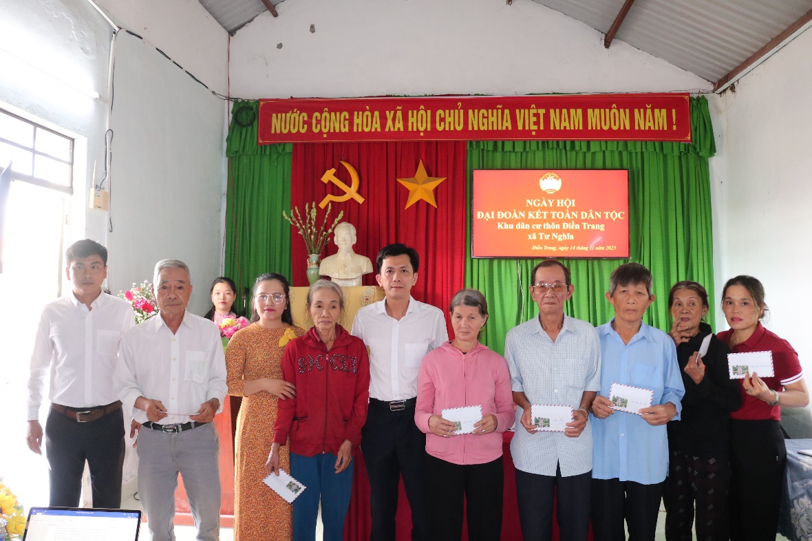 Dịp này, Ủy ban MTTQVN xã Tư Nghĩa, Công ty bia Dung Quất và Ban thôn Điền Trang đã có những quà tặng cho gia đình có hoàn cảnh khó khăn, hộ nghèo trên địa bàn thôn.