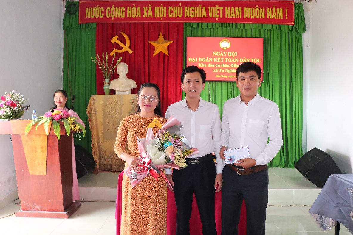 Về dự và chung vui Ngày hội với người dân thôn Điền Trang có các đồng chí: Nguyễn Ngọc Hưng - Phó Bí thư Đảng ủy, Chủ tịch UBND xã Tư Nghĩa; Tô Tấn Linh - Phó Chủ tịch Thường trực Ủy ban MTTQVN xã, Chủ tịch Hội Nông dân xã; cùng đông đảo cán bộ, đảng viên và Nhân dân thôn Điền Trang.