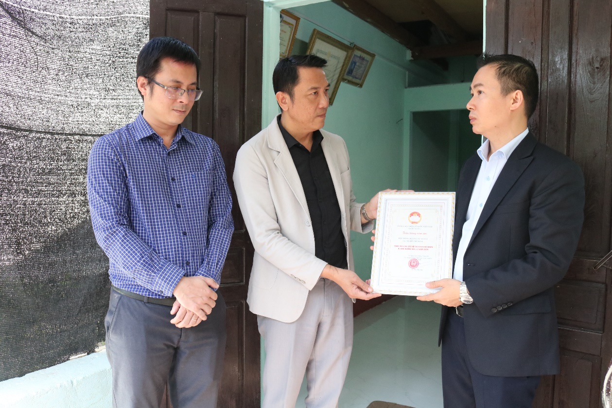 Ông Nguyễn Văn Quang - Phó Chủ tịch UBND xã Tư Nghĩa trao tặng bảng tấm lòng vàng cho đại diện Hội đồng hương Tư Nghĩa tại Thành phố Hồ Chí Minh