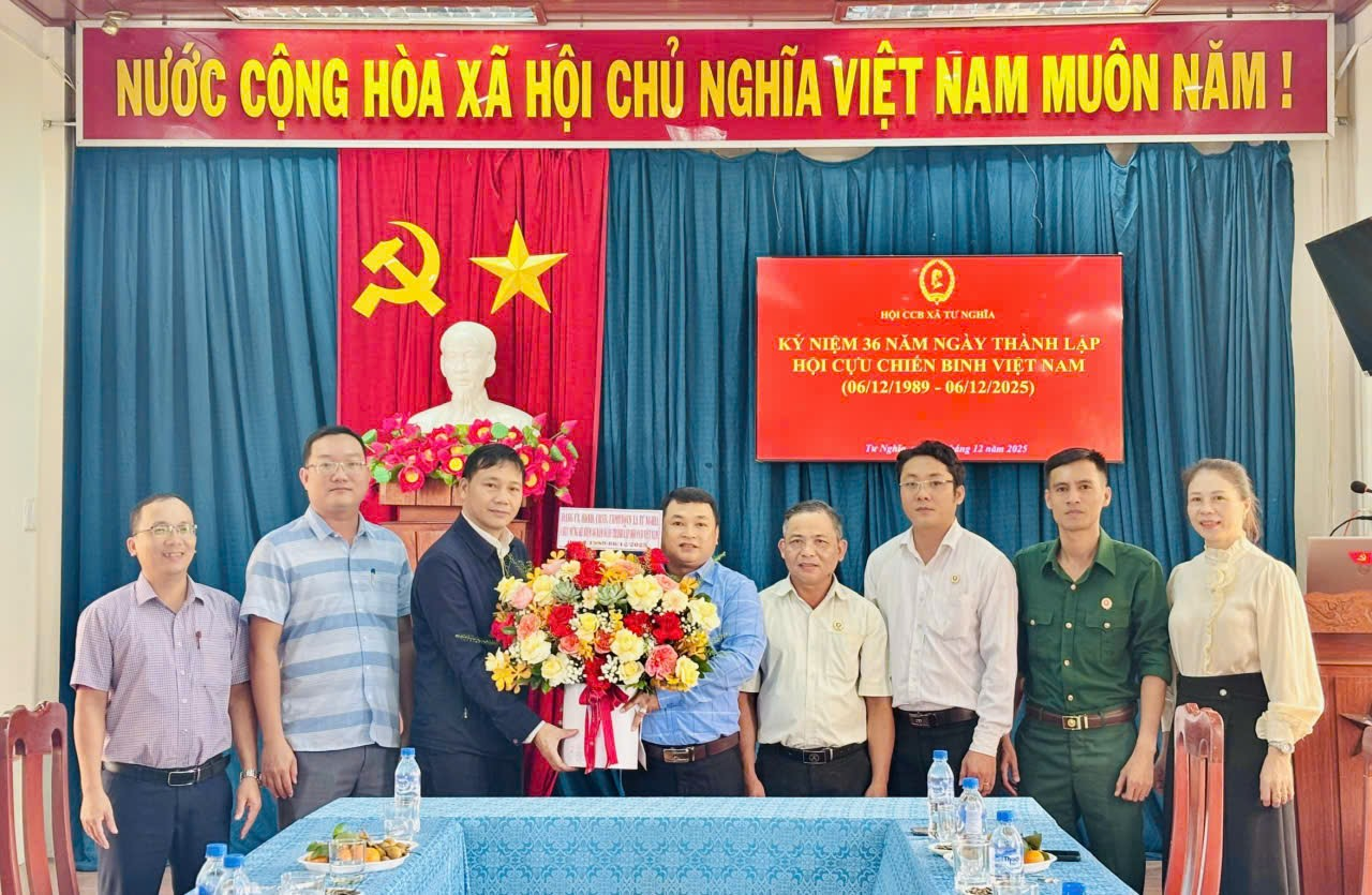 Sáng ngày 05/12/2025, đồng chí Đỗ Ngọc Tây - Phó Bí thư Thường trực Đảng ủy xã Tư Nghĩa thay mặt Thường trực Đảng ủy đã đến thăm, chúc mừng Hội Cựu Chiến binh xã nhân kỷ niệm 36 năm Ngày truyền thống Hội Cựu chiến binh Việt Nam (06/12/1989 - 06/12/2025). Cùng đi có đồng chí Nguyễn Tuấn Kiệt - Ủy viên Ban Thường vụ Đảng ủy, Phó Chủ tịch UBND xã và đồng chí Nguyễn Văn Trinh - Ủy viên Ban Thường vụ Đảng ủy, Chánh Văn phòng Đảng ủy xã.
