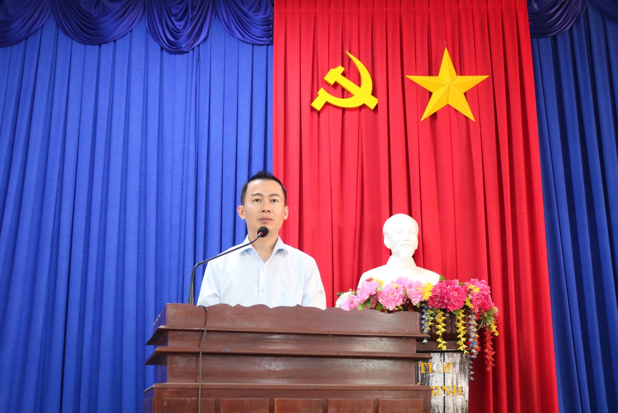 Đồng chí Nguyễn Ngọc Hưng - Phó Bí thư Đảng ủy, Chủ tịch UBND xã Tư Nghĩa phát biểu cảm ơn tại buổi trao tặng quà