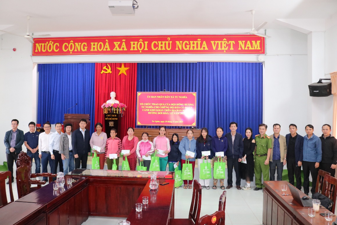 Dịp này, Hội đồng hương Tư Nghĩa đã trao tặng 30 suất quà cho các hộ nghèo, cận nghèo, hộ có hoàn cảnh khó khăn, bị ảnh hưởng bởi bão lũ vừa qua; mỗi phần quà trị giá 800 nghìn đồng, gồm quà và tiền mặt.