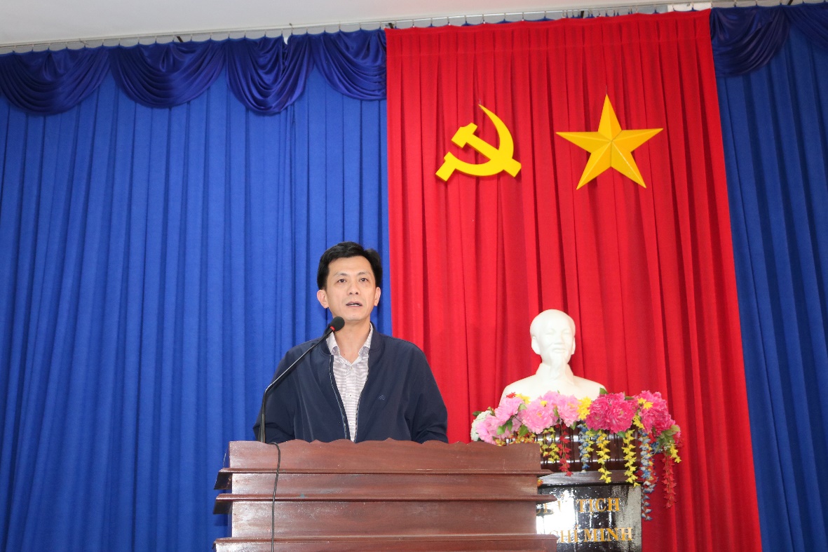 Ông Lê Quang Khánh - Phó Chủ tịch Hội đồng hươngTư Nghĩa tại Thành phố Hồ Chí Minh phát biểu tại lễ trao tặng quà