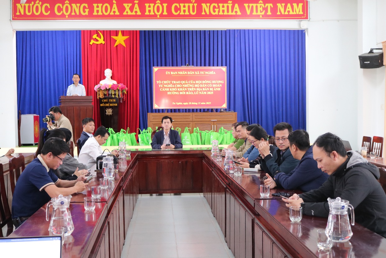 Chiều ngày 28/11/2025, Hội đồng hương Tư Nghĩa tại Thành phố Hồ Chí Minh phối hợp với UBND xã Tư Nghĩa tổ chức tặng quà cho các hộ dân có hoàn cảnh khó khăn, bị ảnh hưởng do bão lũ ở xã Tư Nghĩa.