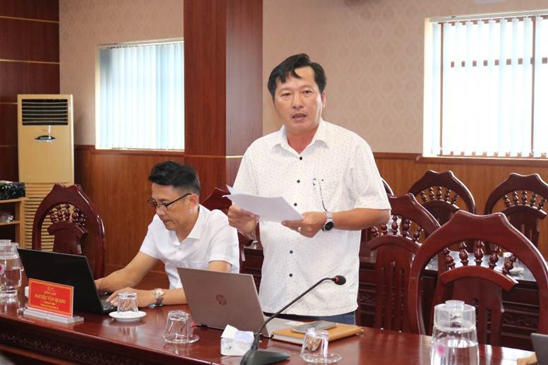 Thầy Phạm Xuân Tám - Hiệu trưởng Trường THPT số 1 Tư Nghĩa phát biểu ý kiến tại buổi làm việc