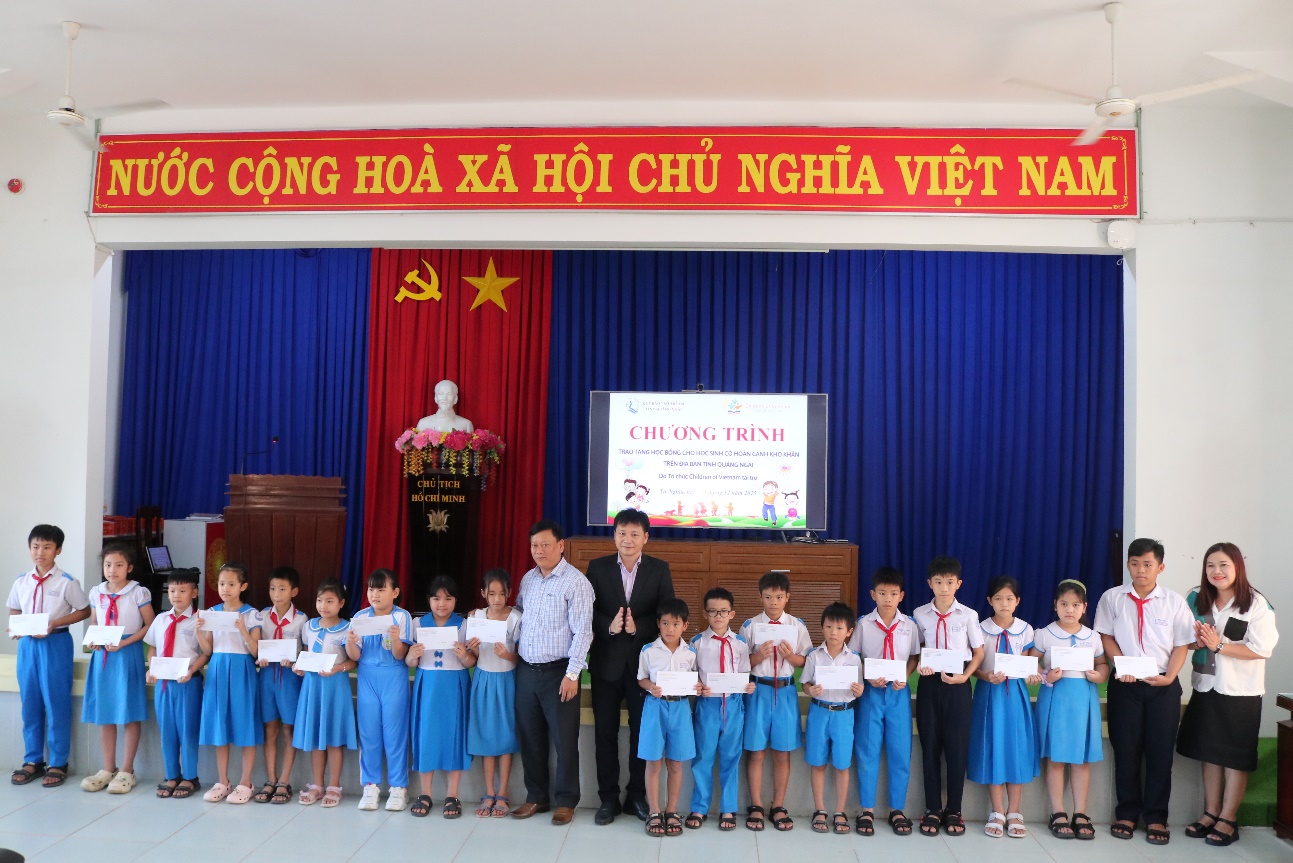 Dự buổi trao tặng học bổng có ông Đinh Duy Long - Giám đốc Quỹ Bảo trợ trẻ em tỉnh; ông Nguyễn Văn Sang - Phó Giám đốc Sở Y tế; ông Võ Đinh Anh Tuấn - Trưởng Văn phòng đại diện Tổ chức Children of Vietnam.