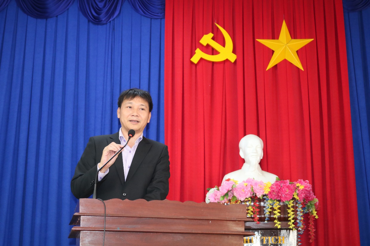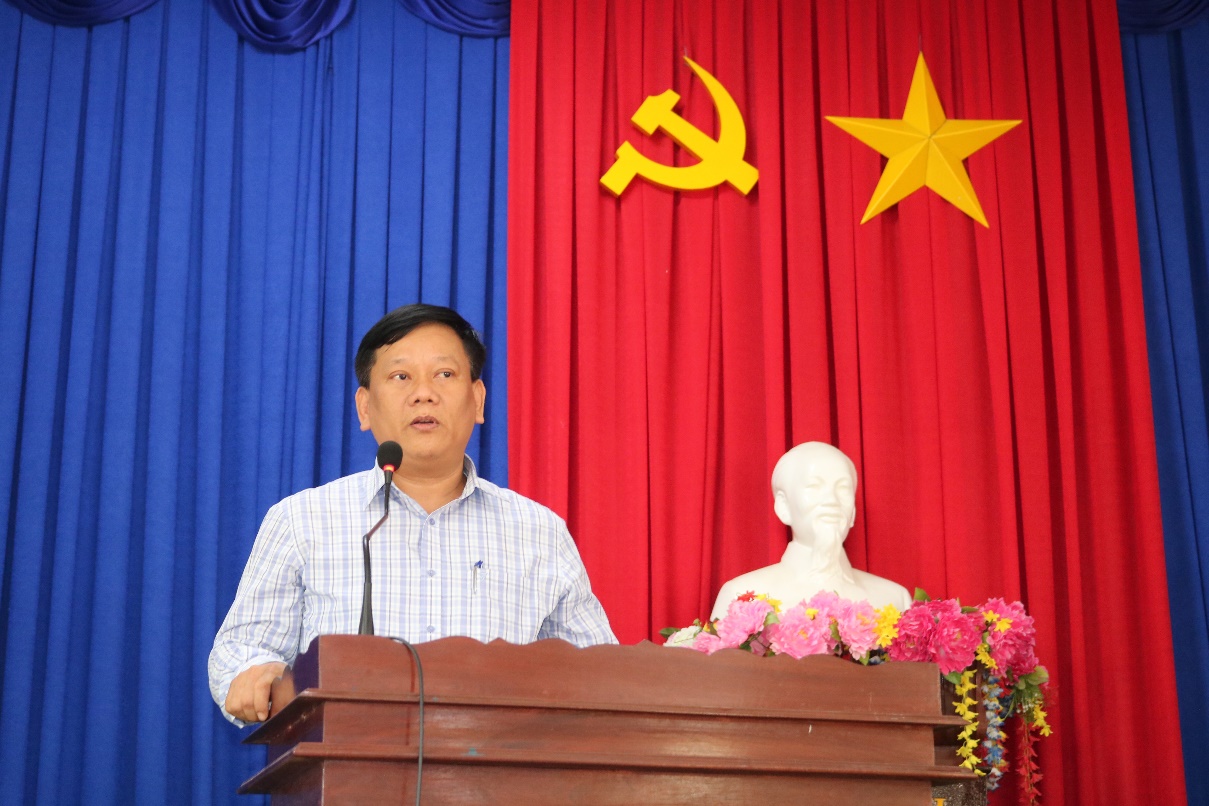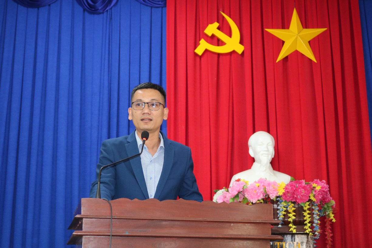 Ông Đinh Duy Long - Giám đốc Quỹ Bảo trợ trẻ em tỉnh phát biểu tại buổi trao học bổng