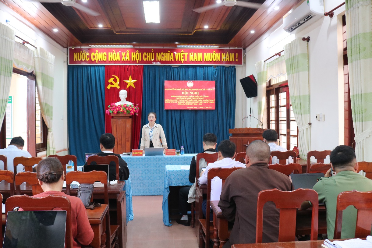 Hội nghị cũng hướng dẫn nội dung, trình tự, thủ tục giới thiệu người ứng cử, làm hồ sơ ứng cử Đại biểu HĐND xã Tư Nghĩa khóa II, nhiệm kỳ 2026 - 2031. Trong đó, làm rõ các bước thực hiện, trách nhiệm của từng cơ quan, đơn vị và vai trò chủ trì hiệp thương của Ủy ban MTTQ. Việc tổ chức hội nghị lấy ý kiến cử tri nơi công tác, nơi cư trú đối với người ứng cử được quán triệt thực hiện nghiêm túc, đúng trình tự, bảo đảm công khai, minh bạch.
