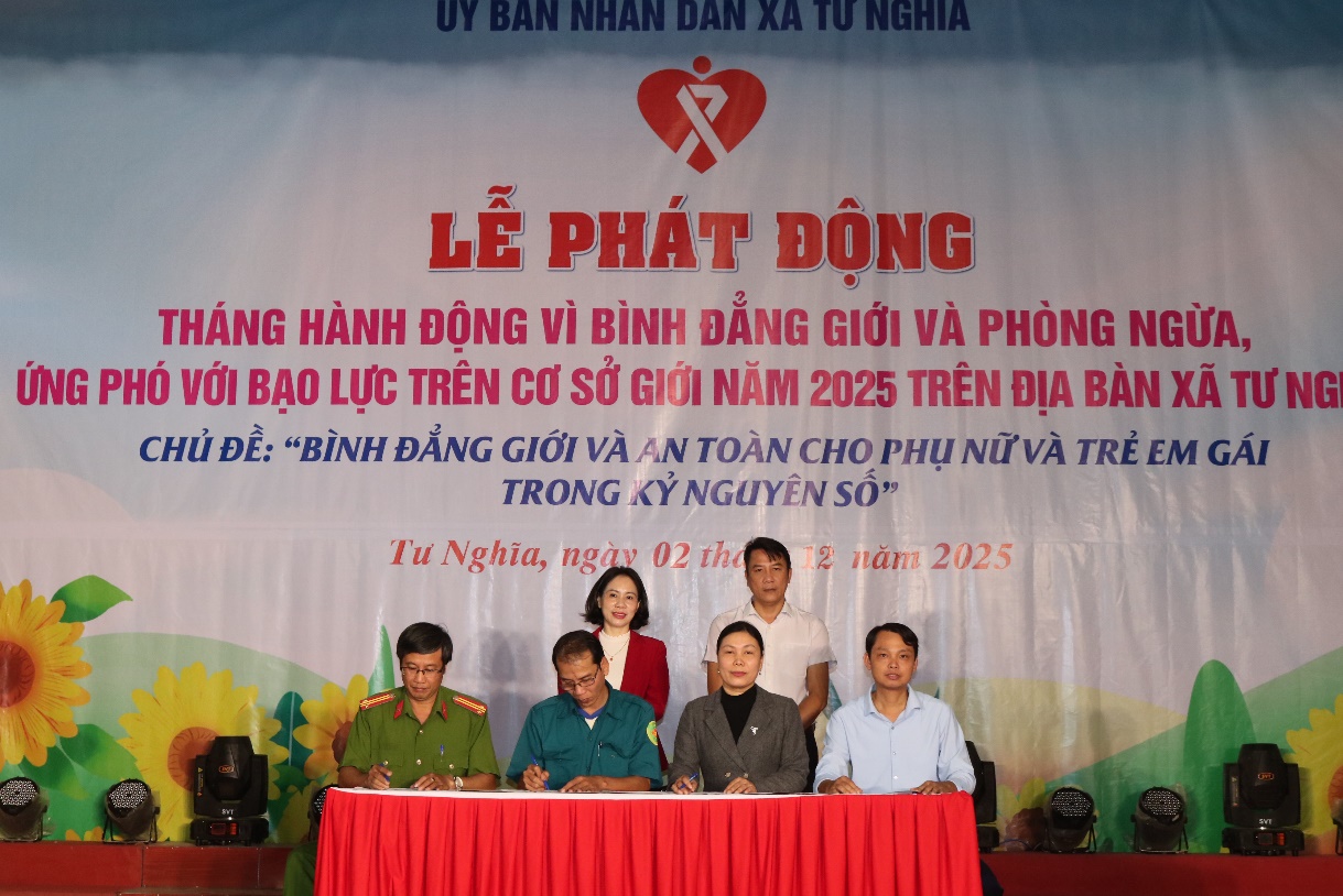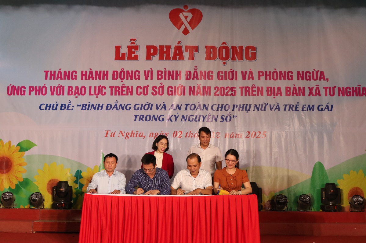 Cũng tại buổi Lễ phát động, đại diện lãnh đạo các phòng, trung tâm, cơ quan, đơn vị ở xã Tư Nghĩa đã ký cam kết hưởng ứng “Tháng hành động vì bình đẳng giới và phòng ngừa, ứng phó với bạo lực trên cơ sở giới” năm 2025.